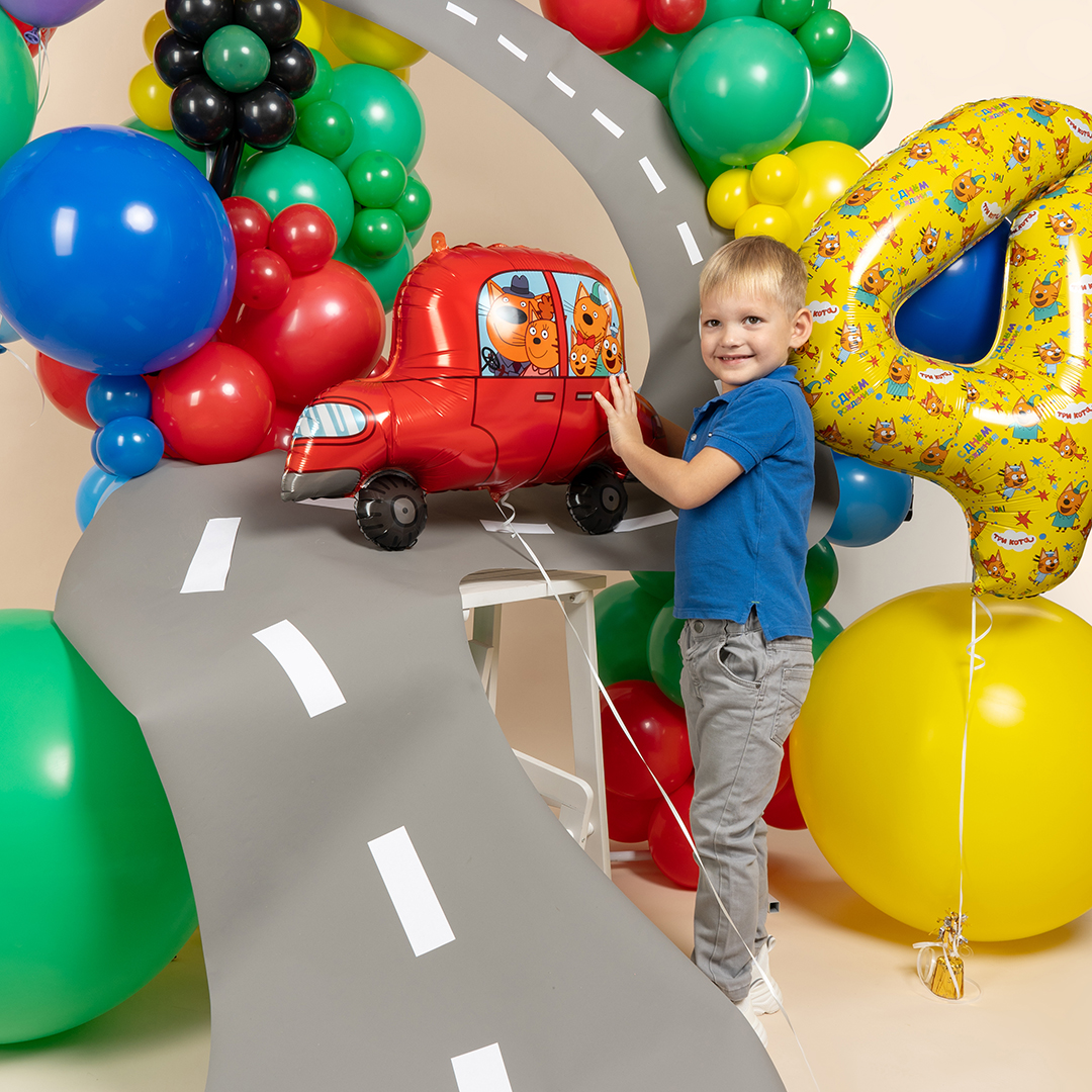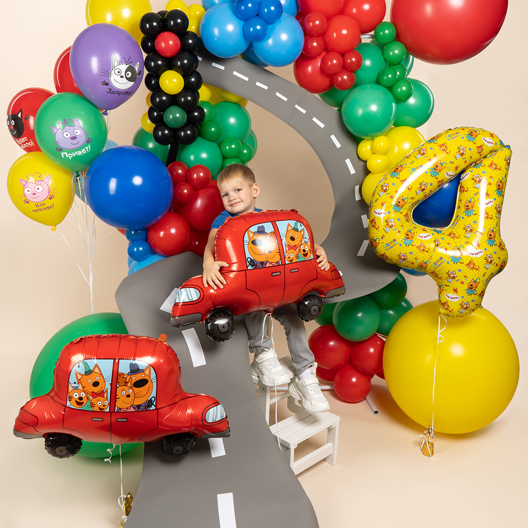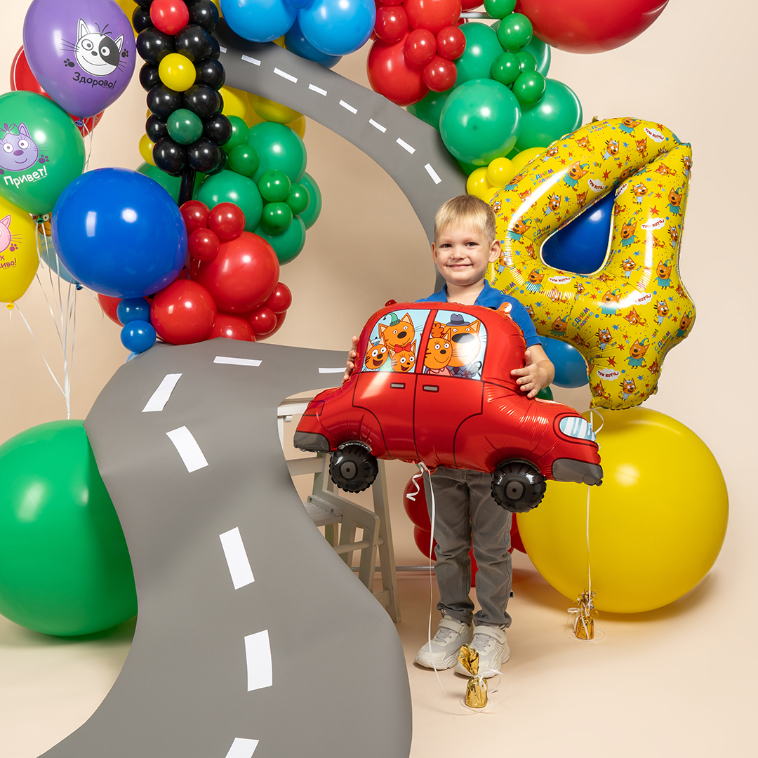 Шар (30''/76 см) Фигура, Три Кота, Автомобиль, 1 шт. в уп.