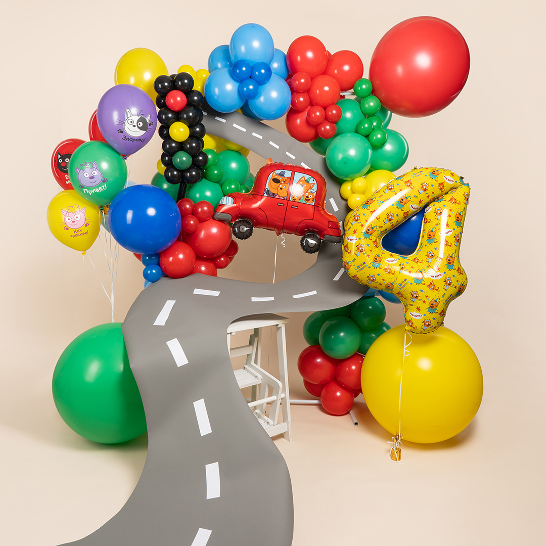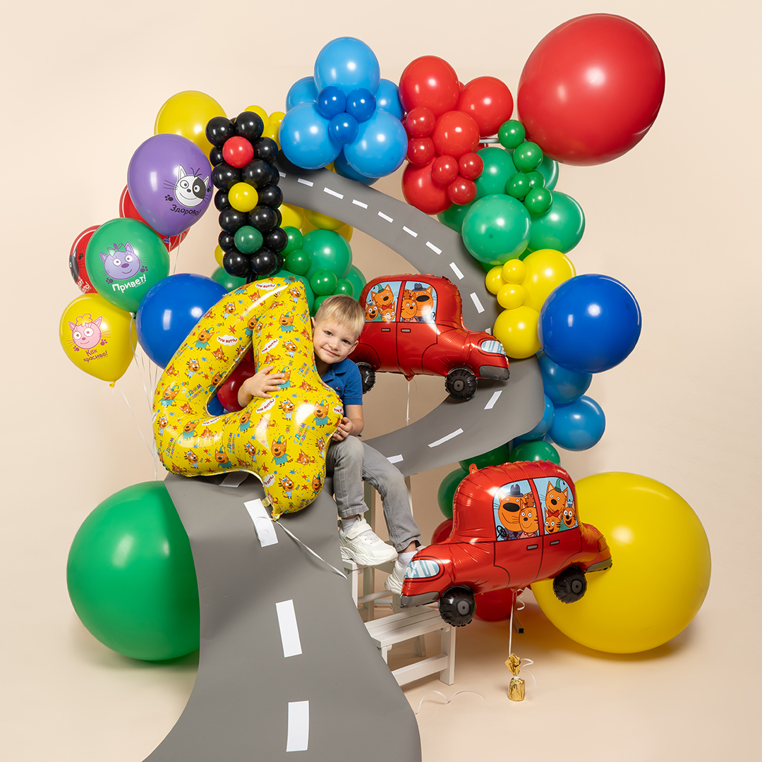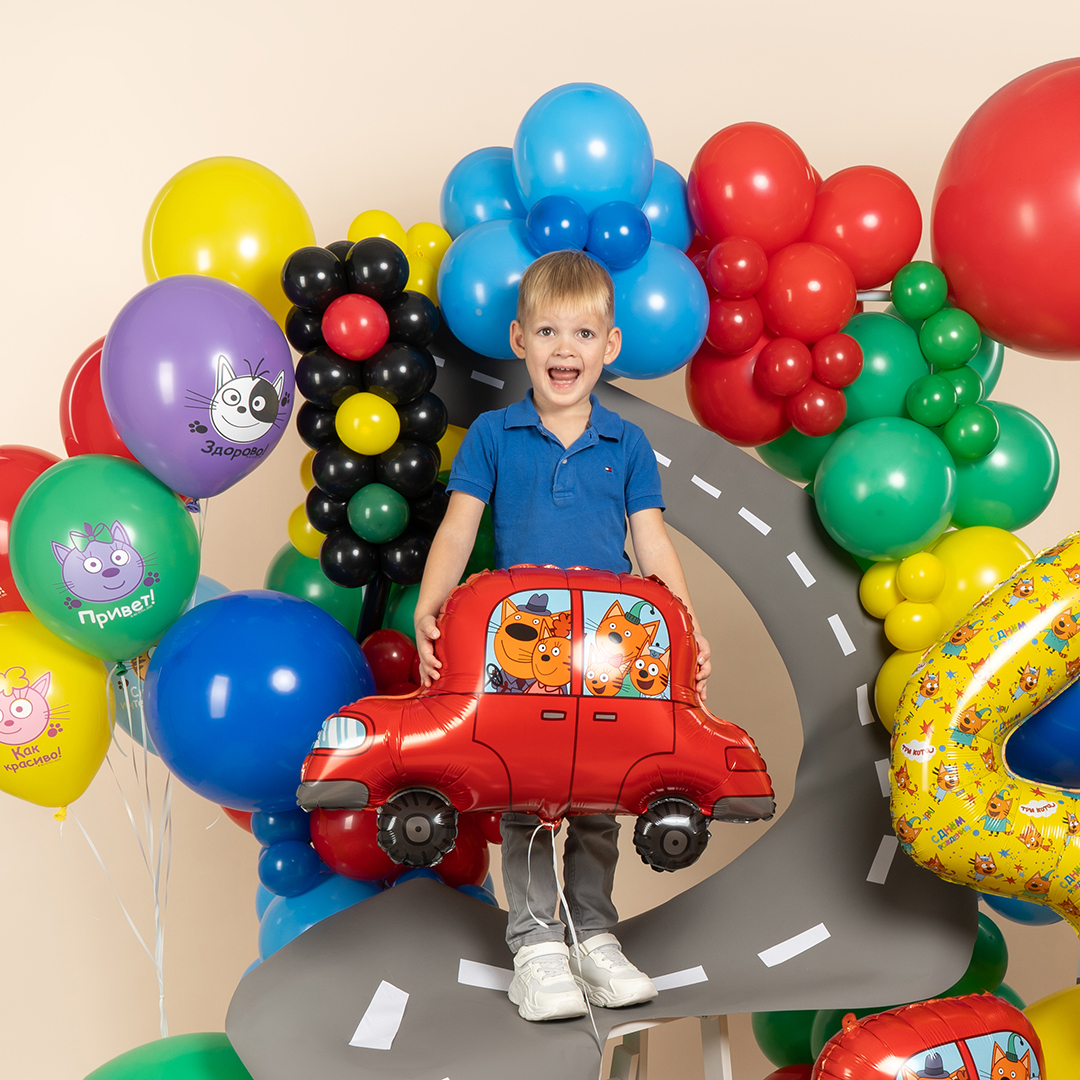 Шар (30''/76 см) Фигура, Три Кота, Автомобиль, 1 шт. в уп.
