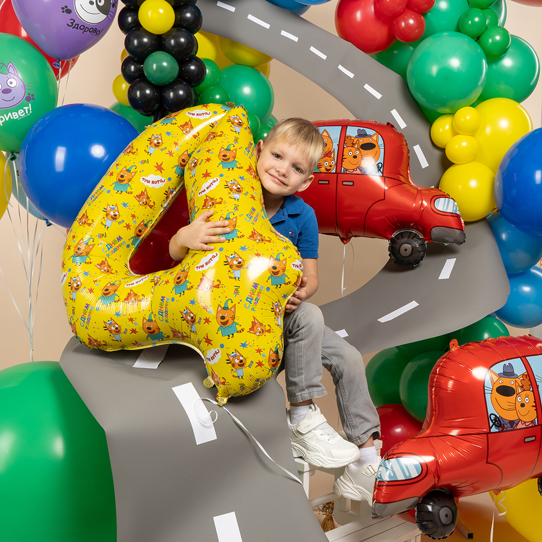 Шар (34''/86 см) Цифра, 4 Три Кота, Желтый, 1 шт. в уп.