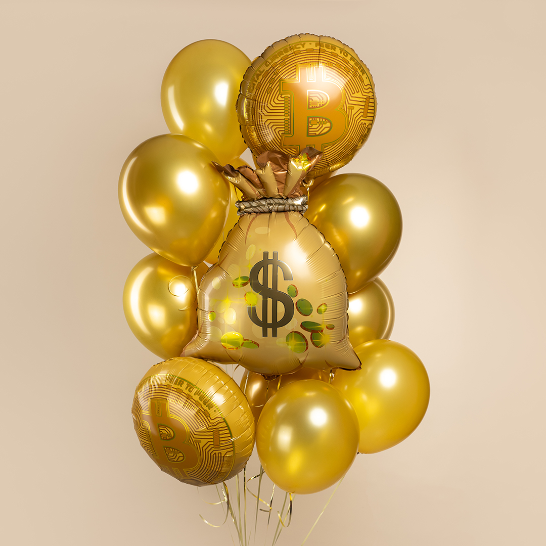 Шар (18''/46 см) Круг, Биткоин, Золото, 1 шт. в уп. (цв.этик.)