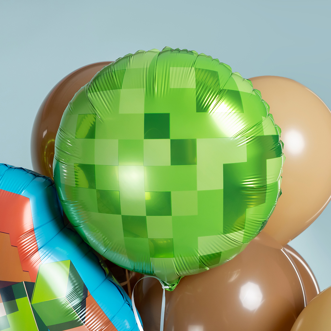 Шар 3D (22''/56 см) Куб, Пиксели, Зеленый/Коричневый, 1 шт.